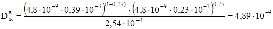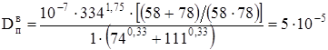 5. Эффективность тарелок по Мерфри5.1 Коэффициент турбулентной диффузиидля тарелок в верхней части колонны: