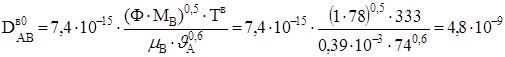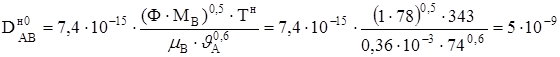 где Ф = 1 – безразмерный параметр, учитывает ассоциацию молекул растворителя