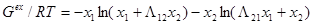 Избыточная энергия Гиббса, соответствующая этим уравнениям, составляет: