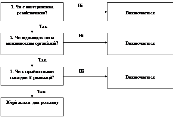 Рис. 3.3. Послідовність оцінки альтернативних варіантів у процесі прийняття рішень