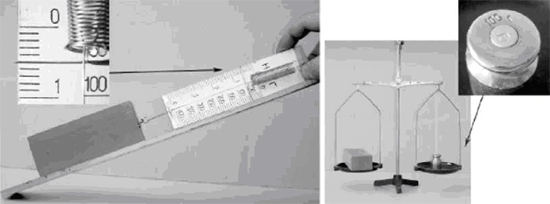 | 4. Брусок тягнуть угору похилою площиною. Рух бруска є рівномірним. Визначте ККД цієї похилої площини, якщо її довжина дорівнює 0,5 м, а висота — 0,2 м. Результати зважування бруска подано на фото, розміщеному праворуч. Уважайте, що g - 10 м/с2