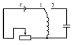 | 33. У електричному колі, зображеному на рисунку, внутрішній опір джерела струму дорівнює 1 Ом, повний опір реостата дорівнює 6 Ом, активний опір котушки дорівнює 2 Ом. Спочатку ковзний контакт реостата знаходився в крайньому лівому положенні, а ключ — у положенні 1. Коли ключ перевели в положення 2, у конденсаторі та котушці виникли вільні електромагнітні коливання. Визначте, у скільки разів збільшиться початкова амплітуда коливань, якщо установити опір реостата рівним 3 Ом та повторити дослід.