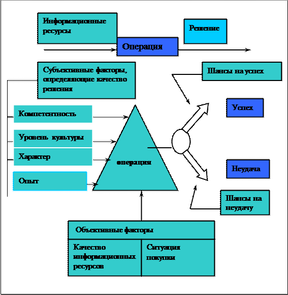 влияющими на исход операции . Качество решения о выбранном товаре (см. рис. 1) определяется субъективным фактором: личностью, т.е. лицом, принимающим решение (ЛПР — по терминологии науки о теории принятия решений), и объективными факторами: качеством информационных ресурсов и ситуацией принятия решения (дефицитом времени, наличием партнеров, финансовыми возможностями и пр.)- Качество решения, шансы на успех или неудачу имеют особое значение при покупке очень дорогих товаров или оказании потенциально опасных услуг. В первом случае имеет место так называемый монетарный риск (вероятность потерять свои деньги), во втором — физический риск (вероятность нанесения вреда здоровью). Кроме того, исследователи указывают на: функциональный риск (товар не выполняет основную функцию); социальный риск (что скажут друзья, знакомые, если я приобрету это); психологический риск (покупка является безответственным поступком либо приводит к возникновению чувства вины). Схема процесса принятия решения о покупке включает: поиск источников информации; переработку информации по таким критериям, как доступность, достоверность, достаточность; принятие решения. Центральное звено модели принятия решения — поиск информации. Направление поиска информации определяется структурой потребностей субъекта оценки — самого потребителя. Привлекательность товара для потребителя определятся тем, насколько параметры товара совпадают с параметрами человека. Каждый выбираемый критерий конкурентоспособности должен отражать определенную информацию об удовлетворяемых потребностях, Поэтому выбираемая номенклатура критериев должна быть адекватна спектру потребностей в товарах (услугах). В течение более 100 лет психологи и участники рынка пытались классифицировать человеческие потребности. Наиболее известным подходом к определению потребностей и их иерархии является пирамида потребностей. Маслоу. Как всякая универсальная модель, она требует коррекции при рассмотрении конкретных объектов. Применительно к товарам и бытовым услугам можно предложить скорректированную модель (рис. 2). Потребности 1, 2, 4, 7, 9, 10 учтены в таком критерии, как уровень качества, критерий 6 - в цене потребления, а потребности 3, 5, 8, 11, 12 должны найти отражение в других критериях конкурентоспособности, сущность и значимость которых будут разобраны ниже.