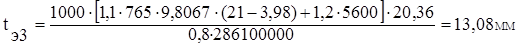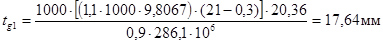 где nг - коэффициент надежности по нагрузке гидростатического давления, nг = 1,1; Zi - расстояние от днища до расчетного уровня, м; γc - коэффициент условий работы, γc = 0,7 для нижнего пояса, γc = 0,8 для остальных поясов; ρ- плотность нефти, ρ=765кг/м3 ; g- ускорение свободного падения, g=9,8067м/с2 ; Нн - максимально допустимый уровень взлива нефти, Нн =21м; Rwy - расчетное сопротивление материала пояса стенки по пределу текучести, 286,1МПа; n2 - коэффициент надежности по нагрузке избыточного давления и вакуума, n2 = 1,2; Ри – избыточное давление, 5600Па. Таблица 3 (1,288)