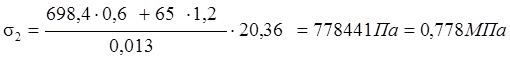 где Рв - нормативное значение ветровой нагрузки на резервуар, Па; n2 - коэффициент надежности по нагрузке избыточного давления и вакуума, n2 =1,2; δср - средняя арифметическая толщина стенки резервуара: