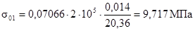 где σ1 - расчетные осевые напряжения в стенке резервуара, МПа; σ2 - расчетные кольцевые напряжения в стенке резервуара, МПа; σ01 – критические осевые напряжения в стенке резервуара, МПа; σ02 - критические кольцевые напряжения в стенке резервуара, МПа. Осевые напряжения определяются по минимальной толщине стенки пояса, кольцевые напряжения – по средней толщине стенки. Расчетные осевые напряжения для РВС определяются по формуле: