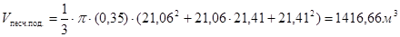 Высоту песчаной подушки принимаем Hпод =0,35 м. Проведем расчет объема песчаной подушки по формуле усеченного конуса. Радиус подушки на 0,7м больше радиуса основания резервуара. Радиус верхнего основания: