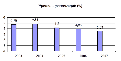 Из данного графика видно, что завод добился значительных успехов в повышении качества продукции, это достигнуто за счёт повышения требований к культуре производства и качеству поставляемых комплектующих изделий.