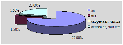 Рис.6. Частота просмотра рекламы (ответ на вопрос 1 анкеты) После месяца получения рекламных визиток представители целевой группы видели ее в среднем 3,9 раза. Это свидетельствует о том, что по прохождении определенного периода времени одна и та же информацию не вызывала у посетителей нового всплеска интереса к ней, однако способствовала поддерживанию образа бара и его услуг в памяти потребителей. Данные, приведенные на рис.7, показывают долю респондентов, которые, собрались в следующий раз посетить бар ООО "Тимур".