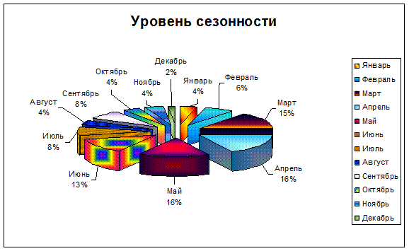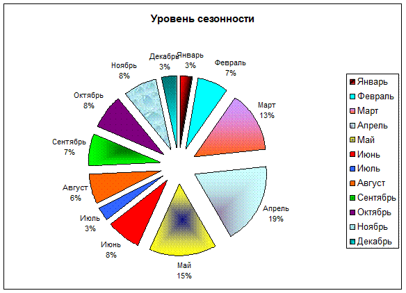 Основной объем реализации работ в предшествующем году пришел на апрель (19%). Таблица 4 Уровень сезонность за отчетный год