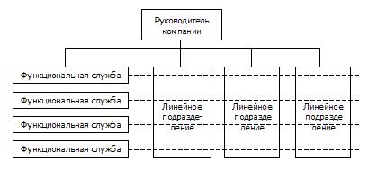 В линейно-штабной организационной структуре штаб работает только с руководителем, и не работает с подразделениями. При расширении предприятия, расширения ее функций, увеличения вопросов, решаемых руководителем совместно со штабом, опять начинается перегрузка руководителя. Горизонтальная связь руководитель-штаб становится узким местом предприятия, экономическая эффективность предприятия начинает снижаться. Достоинства линейно - штабной структуры: · более глубокая, чем в линейной, проработка стратегических вопросов; · некоторая разгрузка высших руководителей; · возможность привлечения внешних консультантов и экспертов; · при наделении штабных подразделений правами функционального руководства такая структура - хороший первый шаг к более эффективным органическим структурам управления. Недостатки линейно - штабной структуры: · недостаточно четкое распределение ответственности, т. к. лица, готовящие решение, не участвуют в его выполнении; · тенденции к чрезмерной централизации управления; · аналогичные линейной структуре, частично - в ослабленном виде. Вывод: линейно - штабная структура может являться хорошей промежуточной ступенью при переходе от линейной структуры к более эффективным. Структура позволяет, правда в ограниченных пределах, воплощать идеи современной философии качества. Выход –создание функциональных подразделений, которые будут работать не только с руководителем, а напрямую со всеми структурными подразделениями, так мы переходим к линейно-функциональной организационной структуре. Линейно – функциональная структура . При увеличении размера предприятия с линейно-штабной организационной структурой число возникающих вопросов, требующих решения увеличивается, штаб разрастается, и нагрузка Руководителя опять же становится чрезмерной.