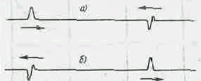 мы сможем на основании сообщенных здесь математических сведений заключить, что процесс изменений этой величины носит характер плоской, волны, распространяющейся в ту или другую сторону со скоростью и, или суперпозиции таких волн. Вид функций f1 , f2 определяется характером движения источника волн, а также явлениями, происходящими на границе среды. Пусть источником волн является плоскость х =0, причем на этой плоскости величина S колеблется но закону s =Acoswt. В этом случае от плоскости х= 0 распространяются вправо и влево волны s= Acos(wt Из линейности волнового уравнения следует, что если ему удовлетворяют функции s1 , s2 ,s3 , ... в отдельности, то ему удовлетворяет также функция S == S1 + S2 + S3 + ... (принцип, суперпозиции). Рассмотрим несколько примеров. а) Волновому уравнению удовлетворяют синусоидальные бегущие волны s1 = Aсоs(wt — kx), s2 = Acos(wt+kx). На основании принципа суперпозиции волновому уравнению удовлетворяет стоячая волна s=2Acoskx coswt являющаяся суперпозицией только что рассмотренных синусоидальных бегущих волн. б) Волновому уравнению на основании принципа суперпозиции удовлетворяет всякая функция вида S= Это—функция вида f(at—bx); она изображает несинусоидальную волну, распространяющуюся без деформации в сторону возрастающих х.