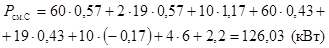 = 0,06; cos 1группа: Рсм1. = 0,14·(12·8+5·5+5·8+9·8+2,7·3+5,4·2+6·5+12·8+5·10+10·6+30·3+11·2) = = 0,14·599,9 = 83,986(кВт); 2 группа: Рсм2. = 0,25·(15·4+26·3+31·1+10·5+13,6·4+19,5·6) = 0,25·390,4 = 97,6 (кВт); 3 группа: Рсм.3. = Рр = 0,7·(7·2+10·2) = 23,8(кВт); 4 группа: Рсм4.
