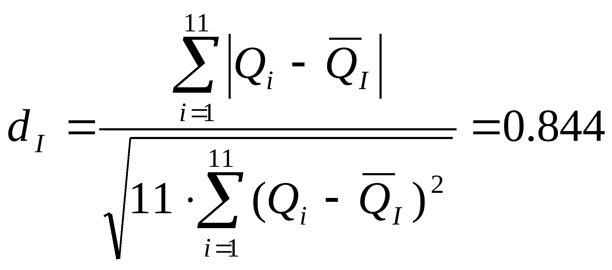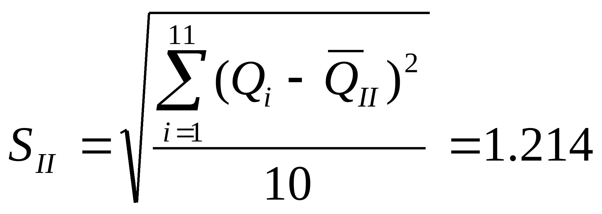 2.1 Определить оценки результата измерения 2.2 Обнаружить и исключить ошибки. Для этого вычислим наибольшее по абсолютному значению нормированное отклонение: Зададимся доверительной вероятностью Р=0.95 /1/, с учетом q = 1 - Р найдем соответствующее ей теоретическое (табличное) значение νq=2.701 ; Сравним ν с ν q. Так как νmax > ν q, то данный результат измерения Q12 является ошибочным, он должен быть отброшен. После этого повторим вычисления для сокращенной серии результатов измерений. Для n=23 определим νq=2.683. Сравним ν с ν q. Так как νmax > ν q, то данный результат измерения Q23 является ошибочным, он должен быть отброшен. После этого повторим вычисления для сокращенной серии результатов измерений Для n=22 определим νq=2,664. Сравним ν с ν q. Так как νmax < ν q, больше ошибочных результатов нет. 2.3 Проверим гипотезу о нормальности распределения оставшихся результатов измерений. Проверка выполняется по составному критерию /1/. Применив критерий 1, вычислим отношение: Зададимся доверительной вероятностью P1=0.98 и для уровня значимости q1=1–Р1 по таблицам /1/, определим квантили распределения d1-0,5ql=0.7360, и d0,5q1=0.8686 Сравним в с d0,5q1, и d0,5q1. Так как d1-0,5q1 < в < d0,5q1, то гипотеза о нормальном законе распределения вероятности результата измерения согласуется с экспериментальными данными. Применив критерий 2, зададимся доверительной вероятностью Р2=0.98 и для уровня значимости q2 = 1 – Р2 с учетом n=22 определим по таблицам /1/, значения m=2 и Р*=097 .Для вероятности Р*=0.97 из таблиц для интегральной функции нормированного нормального распределения Ф (t) /2/, определим значение t=2.17 и рассчитаем: Е = t∙SQ= 2.17*1.224=2.656 Так не более m разностей | 2.4 Определим стандартное отклонение среднего арифметического. Так как закон распределения вероятности результата измерений признан нормальным, то стандартное отклонение определяют как: 2.5 Определим доверительный интервал. Так как закон распределения вероятности результата измерений признан нормальным, то доверительный интервал для заданной доверительной вероятности Р=0.95 определяется из распределения Стьюдента: Е = tS, где t=2.08 выбирается из таблиц /1/, при этом m = n - 1, а = 1-Р. Е=2.08*0.261=0.543 Результат измерения будет Q= 483.5±0.5; a=0.95; n=22. ЗАДАНИЕ 3. ОБРАБОТКА РЕЗУЛЬТАТОВ НЕСКОЛЬКИХ СЕРИЙ ИЗМЕРЕНИЙ При многократных измерениях одной и той же величины получены две серии по n=12 результатов измерений в каждой. Эти результаты после внесения поправок представлены в табл. 2. Вычислим результат многократных измерений. Таблица 2.– результаты измерений Qj,i двух серий.