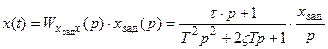Примем, что входной сигнал xзад (t) имеет ступенчатый вид. Аналитически входной сигнал описывается функцией: xзад (t) = xзад (t)·1(t) (2) Этой функции соответствует преобразование Лапласа: Xзад (p) = xзад /p (3) Найдем преобразования Лапласа для переходной характеристики: