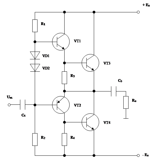 Рисунок 2.1 - Бестрансформаторный выходной каскад