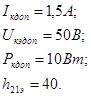 - максимально допустимое постоянное напряжение между коллектором и эммитером;
