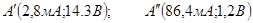 А (30мА ; 15В ); В (0.88А ; 1.74В );