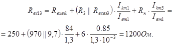 Входное сопротивление верхнего плеча выходного каскада на VT1 и VT3: