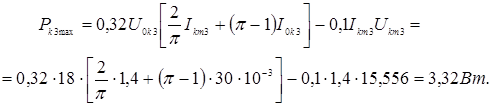После предварительного выбора транзисторов VT3 и VT4 нужно проверить их мощностные показатели при наибольшей температуре окружающей среды по формуле: