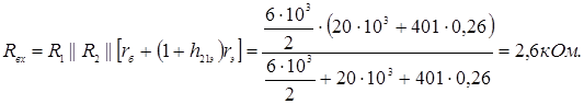 Входное сопротивление верхнего плеча каскада с учетом R1 и R2 :