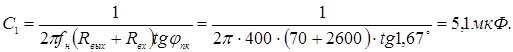 - коэффициент усиления по напряжению промежуточного каскада;