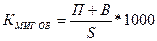 Коэффициент Кобщ.миг. может быть положительным (+) или отрицательным (-). В первом случае речь идёт о притоке населения на данную территорию, во втором – об оттоке. Коэффициент интенсивности миграционного оборота: