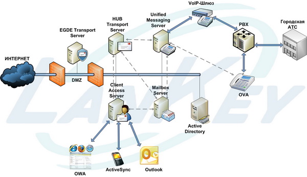 В качестве программно обеспечения для работы почтового сервера был выбран Microsoft Exchange Server 2010. Microsoft Exchange Server 2010 обеспечивает достижение нового уровня надежности и производительности, предлагая средства, которые позволяют упростить администрирование, защитить связи передаваемую информацию и повысить мобильность бизнеса. Для того, чтобы обеспечить полноту возможностей совместной работы для своих пользователей, такие же организации, как ваша, уже давно отдают предпочтение Microsoft Exchange, основному компоненту Объединенных коммуникаций Microsoft. Основные характеристики: 1. Уменьшение расходов и сложности доставки хорошо защищенной, надежной электронной почты бизнес-класса и в то же время обеспечение широких возможностей для работы пользователей. 2. Гибкость в развертывании решения и наличие выбора. Exchange Server 2010 предлагает новые гибкие возможности развертывания, предоставляющие пользователям мощные средства повышения эффективности их работы таким способом, который лучше всего отвечает требованиям вашего бизнеса и технологий. 3. Возьмите под контроль обмен своей бизнес-информацией. Exchange Server 2010 содержит средство «Личный архив», которое позволяет эффективно управлять всей почтой пользователей без использования средств архивации сторонних поставщиков с обеспечением беспрепятственной интеграции работы пользователей. 4. Упрощенное обеспечение высокой готовности и отказоустойчивости. Exchange Server 2010 упрощает обеспечение высокой готовности и катастрофоустойчивости, что позволяет достичь нового уровня надежности и упростить поддержку непрерывности бизнеса. 5. Простота администрирования и меньшая зависимость от службы поддержки. Exchange Server 2010 включает в себя новые возможности самообслуживания, призванные помочь пользователям в выполнении их обычных задач без обращения в службу поддержки. 6. Более мобильный и гибкий доступ к данным. Exchange Server 2010 предлагает усовершенствованный единый почтовый ящик, обеспечивающий пользователям обмен информацией из единой точки входа. 7. Уменьшение загрузки почтовых ящиков и высокая эффективность. Exchange Server 2010 содержит новые функции для повышения производительности труда, которые помогают пользователям упорядочивать и приоритизировать сообщения в их почтовых ящиках. 8. Преобразование обычной голосовой почты. С помощью Exchange Server 2010 пользователи могут получать сообщения голосовой почты с предварительным просмотром в виде текста прямо в почтовый ящик, что позволит заменить устаревшую систему голосовой почты на многофункциональное решение, которое вам хорошо известно и которому вы доверяете. 9. Достижение и поддержание соответствия нормативным требованиям. Exchange 2010 предоставляет новые встроенные средства обеспечения соответствия нормативам, включая одновременный детализированный поиск в нескольких почтовых ящиках, усовершенствованные политики хранения и теги, которые в сочетании с функциями защиты информации и архивации упрощают обеспечение соблюдения корпоративных инструкций. 10. Защита конфиденциальной информации. Благодаря централизованно управляемым и применяемым средствам предотвращения утечек данных Exchange 2010 облегчает защиту передаваемой информации. Гибкость и надежность Необходимость в оптимизации ИТ-инфраструктуры в соответствии с постоянно меняющимися условиями бизнеса тре