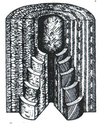 Остеобласты – клетки, создающие костную ткань. Они округлой формы, иногда содержат несколько ядер, располагаются в надкостнице. Остеокласты – клетки, принимающие активное участие в разрушении обызвествленного хряща и кости. Это многоядерные, довольно большие клетки. В течение всей жизни происходит разрушение структурных частей костной ткани и одновременно образование новых, как на месте разрушения, так и со стороны надкостницы. В этом процессе и принимают участие остеокласты и остеобласты. Межклеточное вещество костной ткани состоит из аморфного основного вещества, в котором расположены оссеиновые волокна. Различают грубоволокнистую ткань, которая представлена у эмбрионов, и пластинчатую костную ткань, имеющуюся у взрослых и детей. Структурной единицей костной ткани является костная пластинка. Она образована костными клетками, лежащими в капсулах, и тонковолокнистым межклеточным веществом, пропитанным солями кальция. Оссеиновые волокна этих пластинок лежат параллельно друг другу в определенном направлении. В соседних пластинках волокна обычно имеют перпендикулярное к ним направление, что обеспечивает большую прочность костной ткани. Костные пластинки в разных костях располагаются в определенном порядке. Из них построены почти все плоские, трубчатые и смешанные кости скелета. В диафизе трубчатой кости пластинки образуют сложные системы , в которых различают три слоя:1) наружный, в котором пластинки не образуют полных колец и перекрываются на поверхности следующим слоем пластинок; 2) средний слой образован остеонами. В остеоне костные пластинки расположены концентрически вокруг кровеносных сосудов (рис.4); 3) внутренний слой пластинок отграничивает костномозговое пространство, где располагается костный мозг.