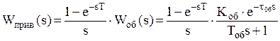 Отношение 0,2< t об / T об <0,7, следовательно, для регулирования будем использовать ПИ-регулятор. Приведенная непрерывная часть системы представляет собой последовательное включение фиксатора нулевого порядка и объекта с заданной передаточной функцией: