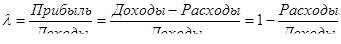 Отношение Пр/Д (прибыль на 1 руб. доходов) обозначим λ: