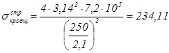 Критические напряжения при общей потере устойчивости стрингера вычисляют как для балки, защемленной по концам