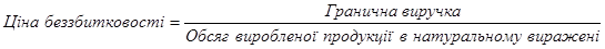 Чим вище маржинальний запас міцності, тим краще для підприємства. Для попереднього приклада маржинальний запас міцності складає 39,4% [(75000 - 45455) : 75000 х 100%]. Значення маржинального запасу міцності, рівне 39,4%, показує, що якщо в силу зміни ринкової ситуації (скорочення попиту, погіршення конкурентноздатності) виручка підприємства скоротиться менш, ніж на 39,4%, то підприємство буде отримувати прибуток, якщо більш, ніж на 39,4% - виявиться в збитку. Для визначення ціни продукції при беззбитковій реалізації можна скористатися наступною формулою: