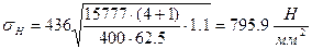 KHv – коэффициент динамичности нагрузки, для спокойной нагрузки, данной скорости, степени кинематической точности, из таблицы 4.3 по справочнику [4] KHv =1.1; тогда контактные напряжения: