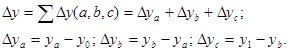где a0 , b0, c0 - базисные значения факторов, оказывающих влияние на обобщающий показатель у; a1 , b1 , c1 - фактические значения факторов; ya , yb , - промежуточные изменения результирующего показателя, связанного с изменением факторов а, b, соответственно. Общее изменение