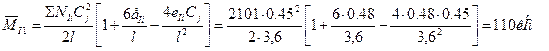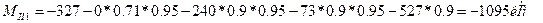 N 1 = 2,8*3 + 0,95*(2,8*0,5 + 2,8*0,7) = 12 кН/м. Момент в уровне планировки на пог. м: MII = N 1* e 1 = 12*0,21 = 2,4 кНм/м. где N1 - вертикальная нагрузка от перекрытия над подвалом, включая собственный вес перекрытия, нагрузку от перегородок и нагрузку на перекрытие, кН; e1 - эксцентриситет приложения нагрузки N1 , м. Эксцентриситет приложения этой нагрузки составляет