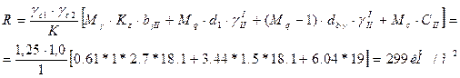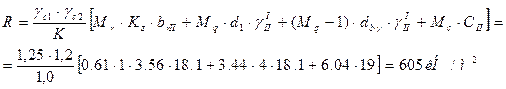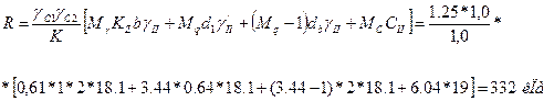 где γcI , γс II - коэффициенты условий работы по СНиП 2.02.01-83*; Кz - коэффициент, зависящий от ширины подошвы фундамента (Кz =1) Mγ