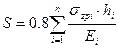 где σzp i - среднее значение дополнительного вертикального нормального напряжения в i-м слое грунта, равное полусумме напряжений на верхней zi -1 и нижней zi границах слоя, кПа; hi , Ei -соответственно толщина, м, и модуль деформации, кПа, i-го слоя грунта; n- число слоев, на которое разбито основание в пределах сжимаемой толщи. Граница сжимаемой толщи находится на глубине z=5,40 м, так как здесь σzp ≤0.2σzg . Получим величину осадки :