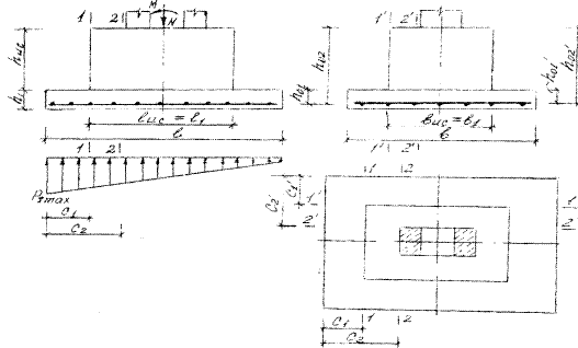 Рис. 1. Схема проектируемого фундамента под крайнюю колонну цеха.