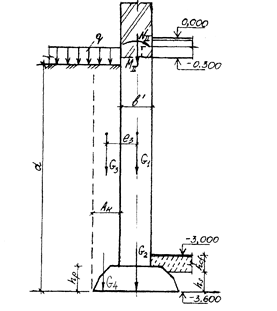 где Gp , lp – соответственно вес и длина фундаментной плиты. Вес грунта на левом уступе фундаментной плиты:
