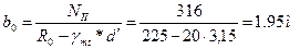 где NII - сумма всех вертикальных нагрузок в обрезе фундамента для расчетов по II группе предельных состояний, кН; Ro - табличное значение расчетного сопротивления грунта, кПа; γmt ~ среднее значение удельного веса материала фундамента и грунта на его уступах; принимаемое в инженерных расчетах равным 20 кН/м3 ; d - принятая глубина заложения фундамента.