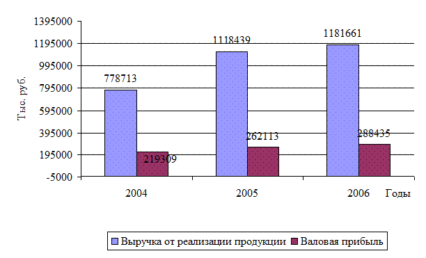 Данные, представленные в таблице 1.1, показывают, что экономические результаты деятельности предприятия за анализируемый период можно назвать удовлетворительными. Многие показатели за период 2006-2008 гг. улучшились, в том числе такой важный, как валовая прибыль (на 69126 тыс. руб.). Также за анализируемый период годовая выручка от реализации продукции значительно увеличилась — на 402948 тыс. руб. с 2006 по 2008 год, в том числе на 63222 тыс. руб. за 2008 год по сравнению с 2007 годом. Соответственно увеличилась и себестоимость реализованной продукции фирмы — на 333822 тыс. руб. за период с 2006 по 2008 год, в то же время она увеличилась на 36900 тыс. руб. за период с 2007 по 2008 год. Это увеличение является следствием, в первую очередь, увеличения объемов реализации продукции. Динамика соотношения показателей выручки и валовой прибыли представлена на рис. 1.1. Рис. 1.1. Динамика соотношения выручки от реализации и валовой прибыли предприятия за 2006-2008 гг., тыс. руб. Поскольку увеличение себестоимости реализованной продукции, т. е. закупочной цены, цены на материалы и электроэнергию, за анализируемый период происходит практически пропорционально увеличению выручки от реализации, то рост заработной платы на этот процесс оказывает лишь очень небольшое влияние. Поэтому можно сделать вывод о том, что фирма ведет успешную коммерческую деятельность и занимает очень устойчивую позицию на рынке. Отрицательным результатом работы ООО «Меркурий» за период с 2006 года по 2007 год является снижение уровня рентабельности деятельности — на 0,04. Однако в период 2008 года этот показатель немного увеличился — на 0,01, а это значит, что предприятия получило прибыль на 1 рубль затрат в производство продукции за 2008 год на 1 коп. больше по сравнению с предыдущим периодом. Также наблюдается значительное повышение эффективности использования основных производственных фондов. Их стоимость увеличилась на 11193 тыс. руб. за анализируемый период. Соответственно увеличился показатель фондоотдачи. А вот за счет увеличения количества работников снизился показатель фондовооруженности — на 1395 тыс. руб. Рентабельность капитала предприятия характеризует прибыль, полученную предприятием с каждого рубля, вложенного в имущество предприятия. В 2007 году фирма имело 0,034 руб. прибыли с 1 рубля, вложенного в имущество, а в 2008 году — уже 0,081 руб. Таким образом, хозяйственная деятельность ООО «Меркурий» является довольно успешной. Основные показатели за период повысились, и находятся в пределах нормы. 2. Диагностика этапов кризиса организации Жизненный цикл организации характеризует основные этапы ее развития как социально-экономической системы. Выделяют 4 традиционные фазы жизненного цикла организации: внедрение, рост, зрелость, спад. Следует отметить, что наряду с традиционным существует большое многообразие авторских теорий жизненного цикла организации, каждая из которых акцентирует внимание на различных сторонах деятельности организации. В антикризисном управлении выделяют следующие этапы кризиса организации: - этап роста — характеризуется положительной динамикой технико-экономических показателей, причем темпы роста (прибыли, активов, рентабельности) выше, чем у ближайших конкурентов и выше среднеотраслевых. Средняя продолжительность этапа — 1,5-2 года. - этап стабилизации — наблюдается положительная 