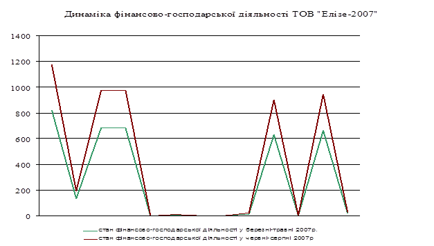 Дана таблиця побудована на основі «Звіту про фінансові результати» ТОВ «Елізе-2007», що представлений у додатку А. Розглянувши дану таблицю можна зробити висновок, що фінансово-економічна діяльність ТОВ «Елізе-2007», при порівнянні двох періодів має позитивну динаміку. Відхилення показують, що дана фірма успішно розвивається й реалізує свої потенційні можливості в обраному напрямку діяльності. Показники темпу зросту вказують на те, що дана фірма розвивається пропорційно. Для наочності різниці між показниками двох періодів, які розглядаються, я бачу доцільним побудувати графік «Динаміка фінансово-господарської діяльності ТОВ «Елізе-2007» (рис. 2.1).