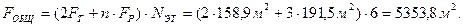 где FT ОРЦ – площадь торцевой секции, составляет 158,9 м2 ; FРЯД – площадь рядовой секции, составляет 191,5 м2 ; n – количество рядовых блокирующих секций; NЭТ – число этажей здания.