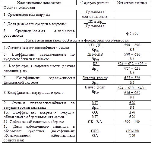 Перекос структуры долгов в сторону товарных кредитов от других организаций, скрытого кредитования за счет неплатежей фискальной системе государства и задолженности по внутренним выплатам отрицательно характеризует хозяйственную деятельность организации. Степень платежеспособности общая и распределение показателя по виду задолженности представляют собой значения обязательств, отнесенные к среднемесячной выручке организации, и являются показателями оборачиваемости по соответствующей группе обязательств организации. Кроме того, эти показатели определяют, в какие средние сроки организация может рассчитаться со своими кредиторами при условии сохранения среднемесячной выручки, полученной в данном отчетном периоде, если не осуществлять никаких текущих расходов, а всю выручку направлять на расчеты с кредиторами.