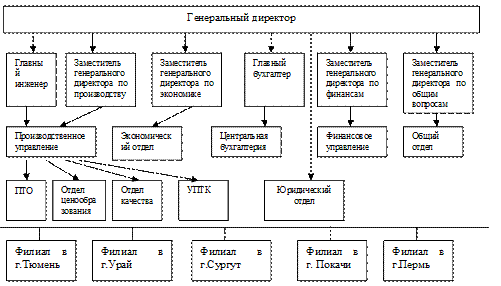 Рис.2. организационная структура ЗАО "ПромИнтегр" Каждый из филиалов Общества состоит из пяти производственных участков: 1) строительно-монтажный участок – общестроительные работы на объектах промышленного и гражданского назначения; 2) строительно-монтажный участок – возведение жилых домов и гражданских объектов из монолитного железобетона; 3) участок специализированных работ – монтаж технологического оборудования и трубопроводов на объектах производственного назначения, монтаж резервуаров, печей на месторождениях, а также их ремонт; 4) участок трубопроводного строительства – полный комплекс работ по монтажу магистральных и промысловых трубопроводов нефти, газа и подтоварной воды; 5) участок электромонтажных работ – работы по электромонтажу на объектах, монтаж оборудования КИП, монтаж слаботочных устройств, строительство кабельных и воздушных линий электропередач напряжением до 10 кВт включительно. Помимо производственных участков в каждом филиале Общества существуют подразделения, обеспечивающие производственные участки необходимыми материалами, конструкциями и услугами, в том числе: - участок стройиндустрии в составе цеха металлоконструкций, цеха деревообработки и бетоносмесительного узла; - отдел производственно-технологической комплектации, обеспечивающий заказ, приемку, хранение и обеспечение объектов материалами конструкциями и оборудованием; - участок малой механизации, обеспечивающий все подразделения средствами малой механизации, а также отвечающий за правильную их эксплуатацию и ремонт; - центральная строительная лаборатория, которая осуществляет контроль качества выполняемых работ, сварных стыков всех категорий трубопроводов, а также подбор состава бетонных смесей на бетоносмесительных узлах. Общество имеет доли в уставных капиталах пяти организаций на общую сумму 25 514 тыс.рублей. Выручка от реализации продукции, работ и услуг за 9 месяцев 2007 года составила 2 998 856 тыс. руб. (с учетом НДС). Все объекты строительства, осуществляемого Обществом, застрахованы на предмет возмещения ущерба, причиненный объекту строительства в результате непредвиденного и внезапного внешнего воздействия. Контроль качества работ осуществляется центральной строительной лабораторией, которая имеет лицензии на проведение неразрушающего контроля качества и диагностики по объектам нефтедобывающей промышленности. Квалификация Общества подтверждена государственными лицензиями на выполнение строительно-монтажных работ, выполнение проектных работ, инжиниринговые услуги, осуществление функций Генерального подрядчика и Заказчика, производство отдельных видов строительных материалов, конструкций и изделий. Общество осуществляет строительство газопроводов, административных и жилых домов, а также выполняет ремонтные работы. Сфера деятельности – Север Российской Федерации. Общество имеет филиалы в городах: Тюмень, Сургут, Урай, Пермь и Покачи, а также представительство в Москве, которое осуществляет общее управление деятельностью Общества. Выбор в качестве приоритетных данных регионов не случаен. Указанные субъекты Российской Федерации являются одними из самых устойчивых регионов России в социально-экономическом плане. Это вызвано тем, что основой их экономики являются предприятия топливно-энергетичес