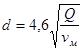 Внутренний диаметр трубопровода рассчитывается по формуле: