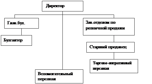 Рис. 5 Организационная структура торгового предприятия ООО «Исток» Как видно, торговое предприятие ООО « Исток» имеет линейно-функциональную организационную структуру, при которой четко выражено разделение труда и специализация. Преимущества данного типа структуры заключается в следующем: - единство и четкость распоряжений - согласованность действий и четкая система взаимосвязей между директором и подчиненными - оперативность в принятии управленческих решений - ясно выражена ответственность - нет потребности в специалистах высокого профиля Основными недостатками организационной структуры выступают: -высокие требования к зав отделами , которые должны иметь разносторонние знания и опыт работы по всем функциям управления и сферам деятельности. -огромный поток информации сосредоточен у директора. Таблица 2.1 - Анализ основных показателей деятельности торгового предприятия за 2007-2008 г.г.