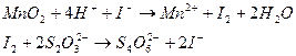 Далее вводят избыток йодида калия и выделившийся йод оттитровывают раствором тиосульфата: