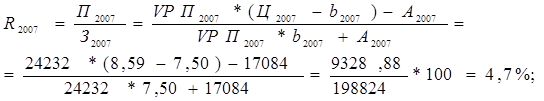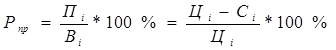 где Прп – прибыль от реализации продукции; ВР – выручка от продаж товаров, работ, услуг. По динамике данного показателя предприятие может принимать решение по изменению ценовой политики или усилению контроля за себестоимостью продукции. Показатель можно определять в целом по продукции или по отдельным ее видам. Факторный анализ рентабельности издержек следует проводить по каждому виду продукции. Уровень рентабельности отдельных видов продукции зависит от изменения среднереализационных цен и себестоимости единицы продукции.